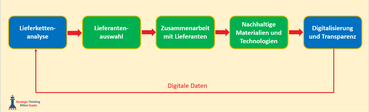 - Regelmäßige Audits durchführen, um bei Lieferenten die Einhaltung der Nachhaltigkeitsstandards zu überprüfen.