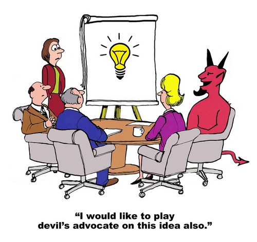 Ideally, the devil’s advocate should be an external facilitator or coach who has no personal stake in the decision and who is well versed in group dynamics and decision making processes. The devil’s advocate should not dominate the discussion, but just give impulses to the discussion when everyone else is converging too quickly on a certain option without sufficiently exploring all relevant options.