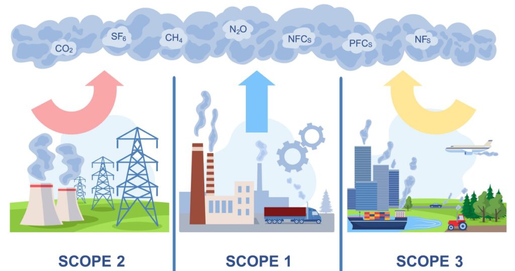 Operational boundaries: The emission sources must be defined within the defined organizational boundaries. These are divided into scope 1 (direct emissions), scope 2 (indirect energy emissions) and scope 3 (other indirect emissions from the upstream and downstream supply chain).