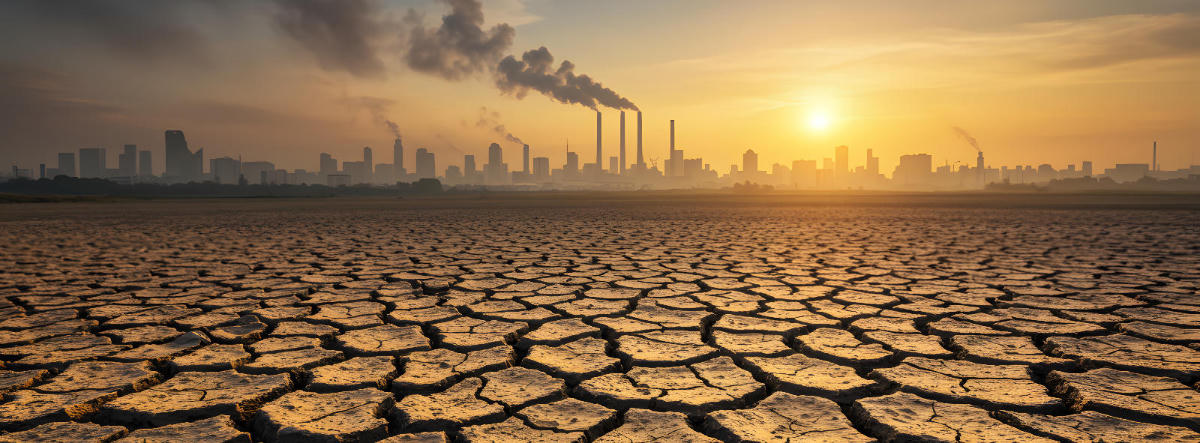 Symbolische Darstellung von Klimarisiken durch Dürre und industrielle Umweltbelastung